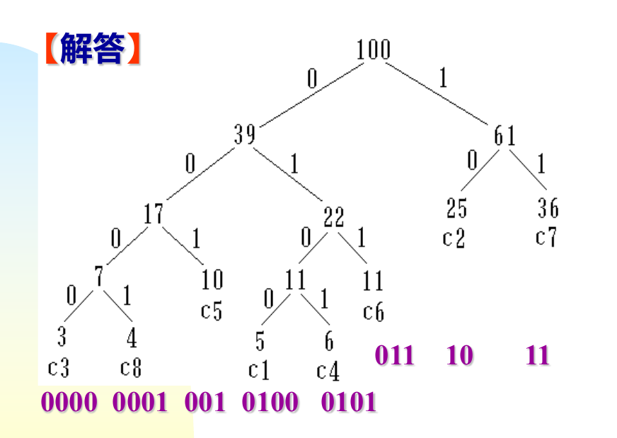 假定用于通信的电文仅由 8个字母 c1, c2, c3, c4, c5, c6, c7, c8 组成, 各字母在电文中出现的频率